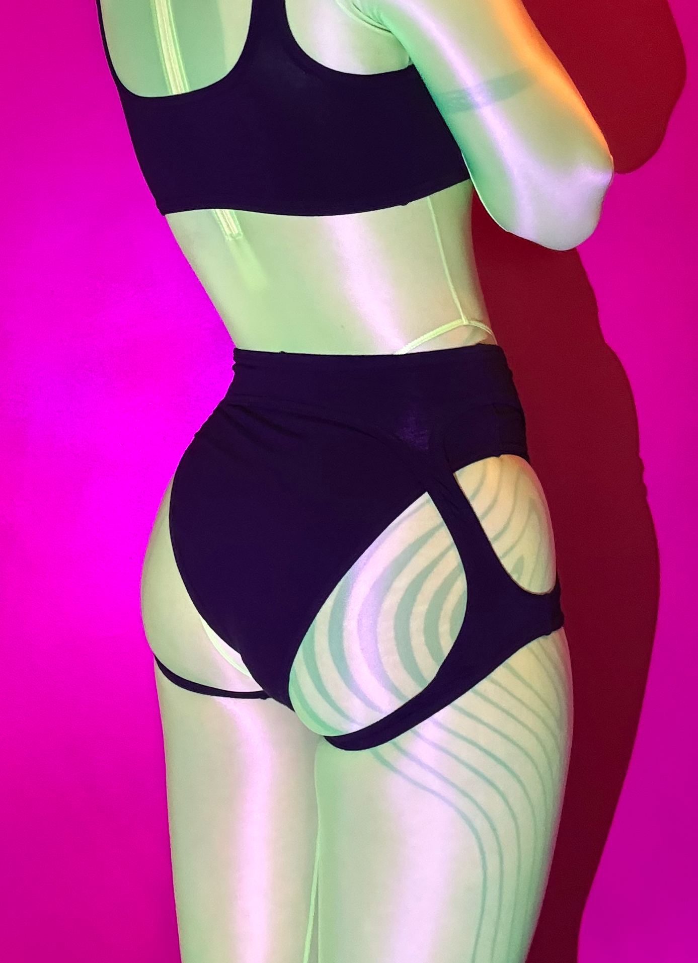 Brief with attached suspender strap layer in organic cotton spandex jersey. Model wears a small in black--check the size chart for more info. All items I hand-make to order--please allow up to a month processing time (or 6 weeks during sales) for your items to be marked as shipped to you :)