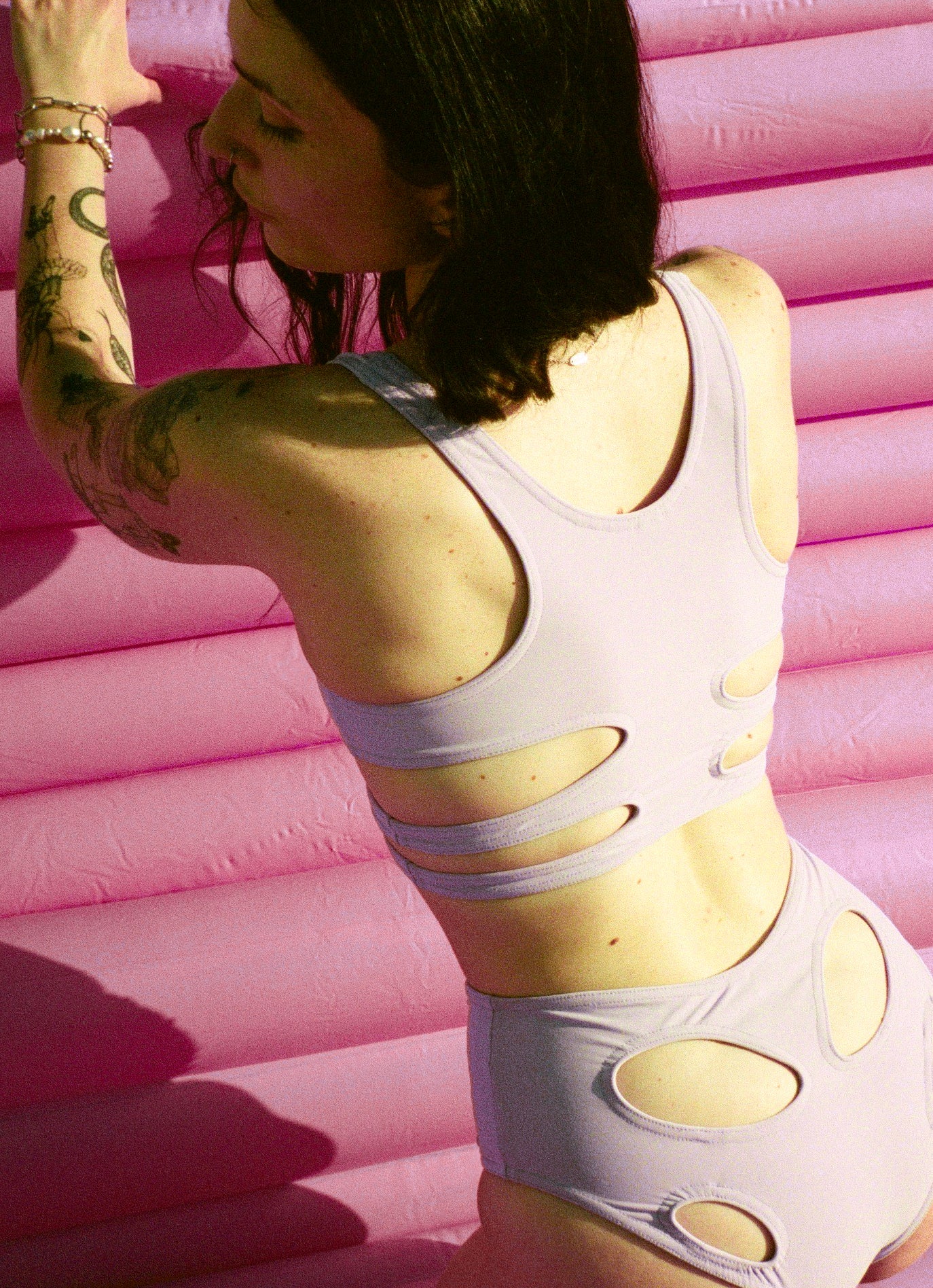 New bikini version of the ribs bra, made with recycled swimwear fabric. Model wears a medium--check the size chart for more info. All items I hand-make to order--please allow up to a month processing time (or 6 weeks during sales) for your items to be marked as shipped to you :)