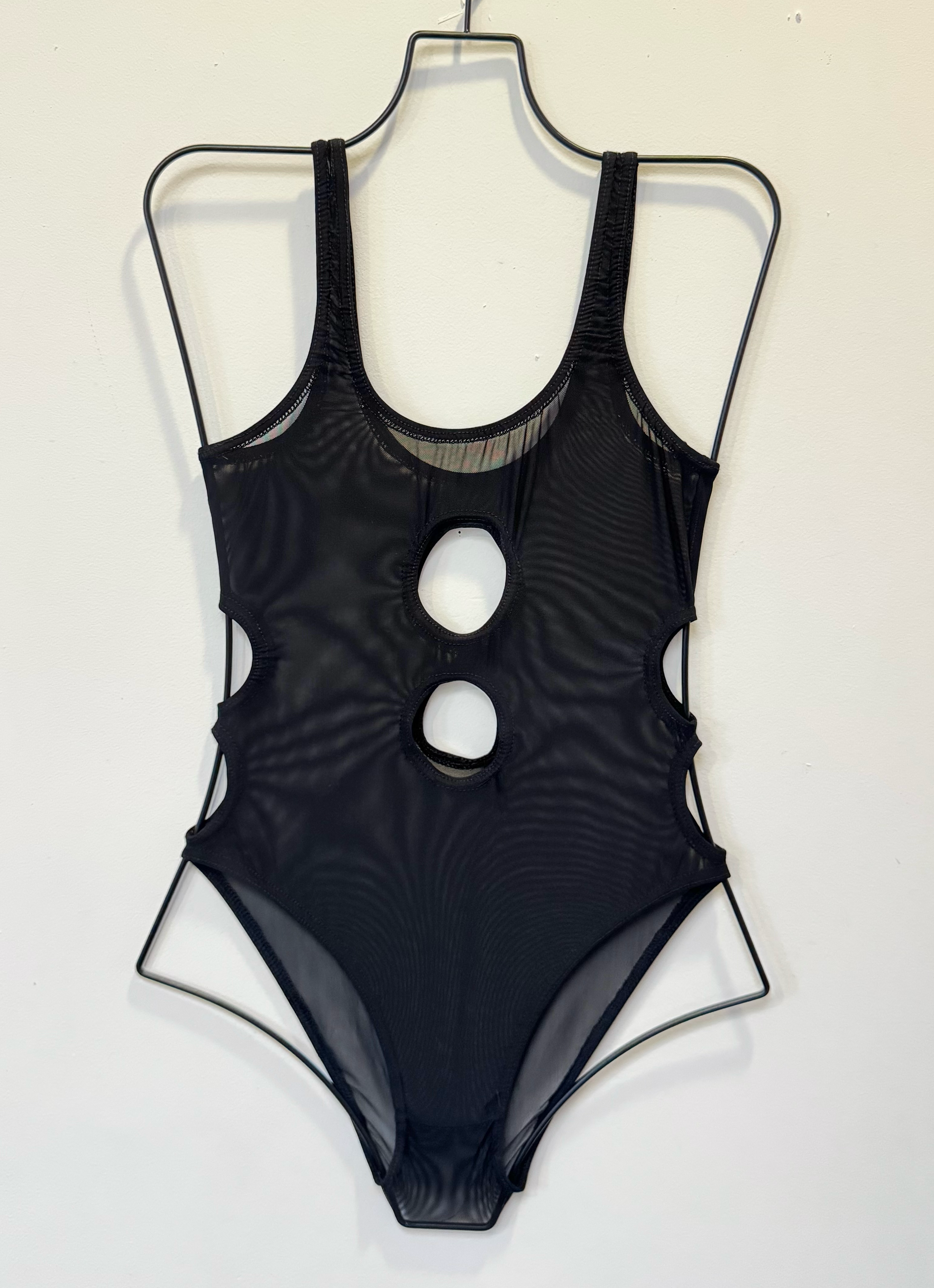 *SAMPLE* Black Mesh Bodysuit with cutouts, S